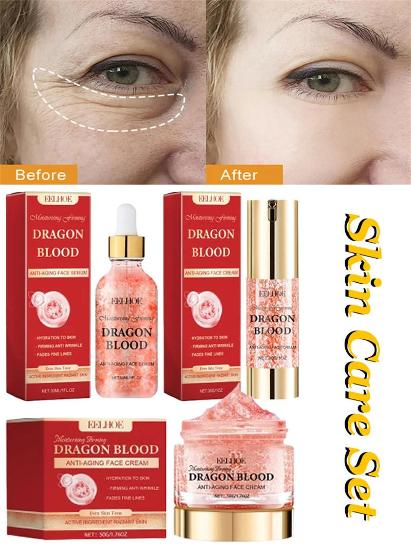 Dragon Blood Wrinkle Remover Face Set Instant Firming Lifting Anti-Aging Serum Fade Fine Lines Whitening Korean Skin Care Products