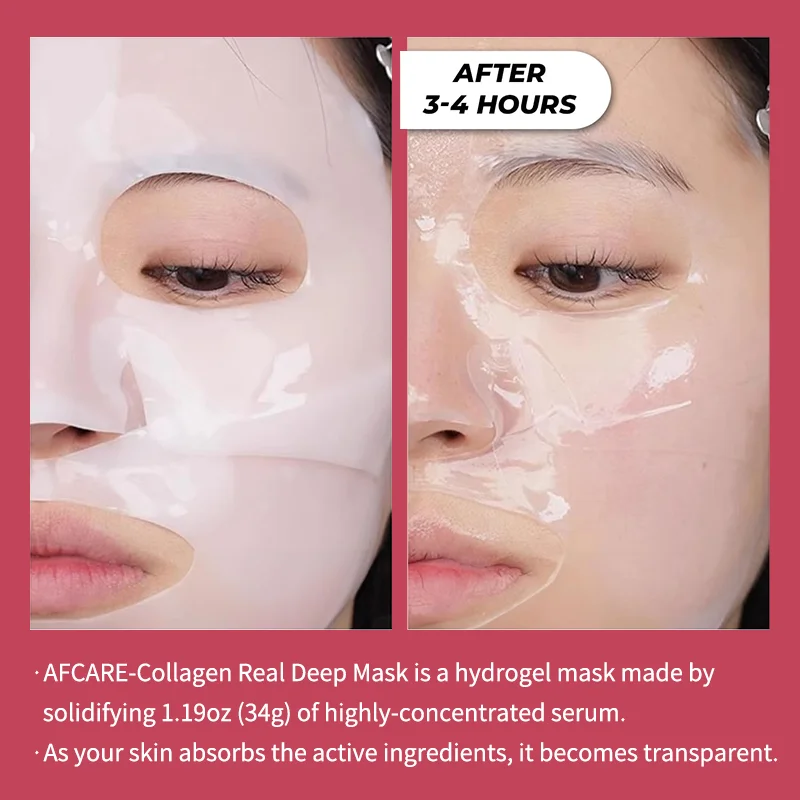 DEEP HYDRATION: The oligo-hyaluronic acid in the AFCARE Bio-Collagen Real Deep Mask provides superior moisturizing effects compared to regular hyaluronic acid. It quickly hydrates the skin's surface and penetrates deeper layers, leaving the complexion healthy and well-moisturized.